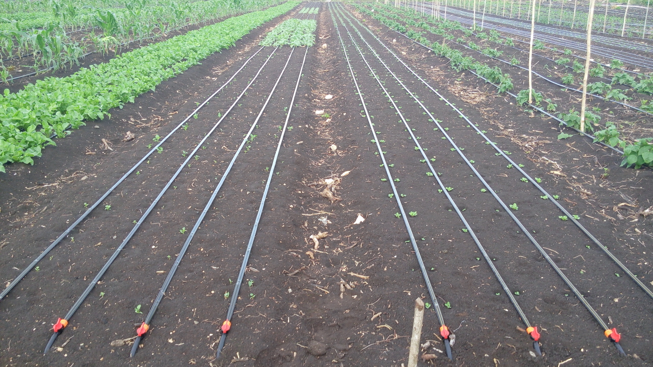- b) Riego por aspersión a campo abierto, microaspersión a campo abierto, goteo y sistemas de nebulización en invernaderos